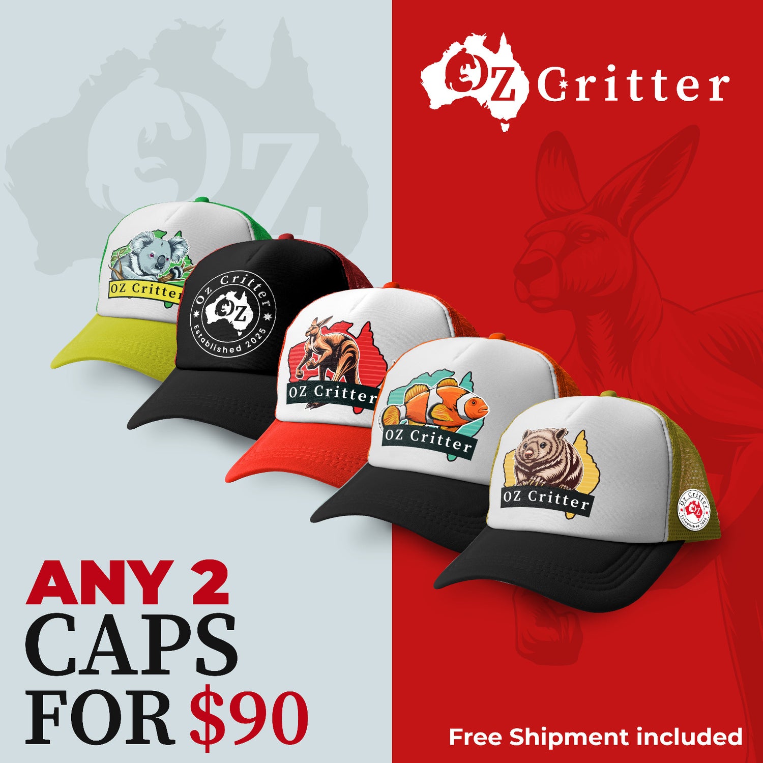 Critter Carnival Volume I is OZ Critter’s tribute to the creatures that make Australia unforgettable. This exclusive drop of Aussie trucker caps features five native animals, each brought to life through bold design, premium materials, and breathable construction. These aren’t just trucker caps Australia can wear, they’re wearable tributes to the wildlife that defines our culture.